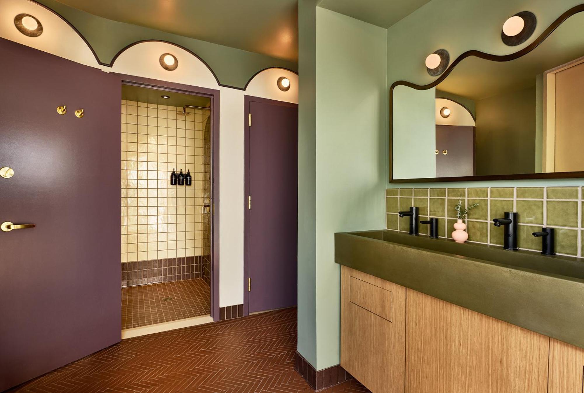 在公共衛浴的設計上,團隊延續了溫潤、舒適的設計主軸。開放式的洗手台區域採用柔和的間接照明,搭配富有紋理的建材,營造出安寧放鬆的氛圍,減輕了共享設施可能帶來的侷促感。而廁所與淋浴間則為可獨立上鎖的隔間,充分保障了個人的隱私需求。 Islyn Studio表示,整體的設計意圖是創造一種「既熟悉又新奇,彷彿來自夢境」的體驗,讓空間感覺既雋永又充滿驚喜。
