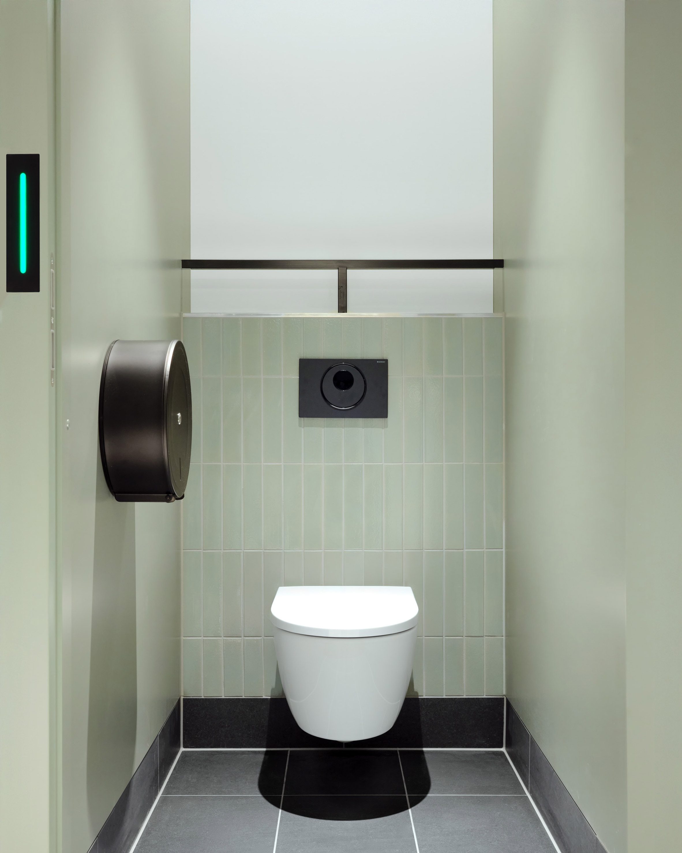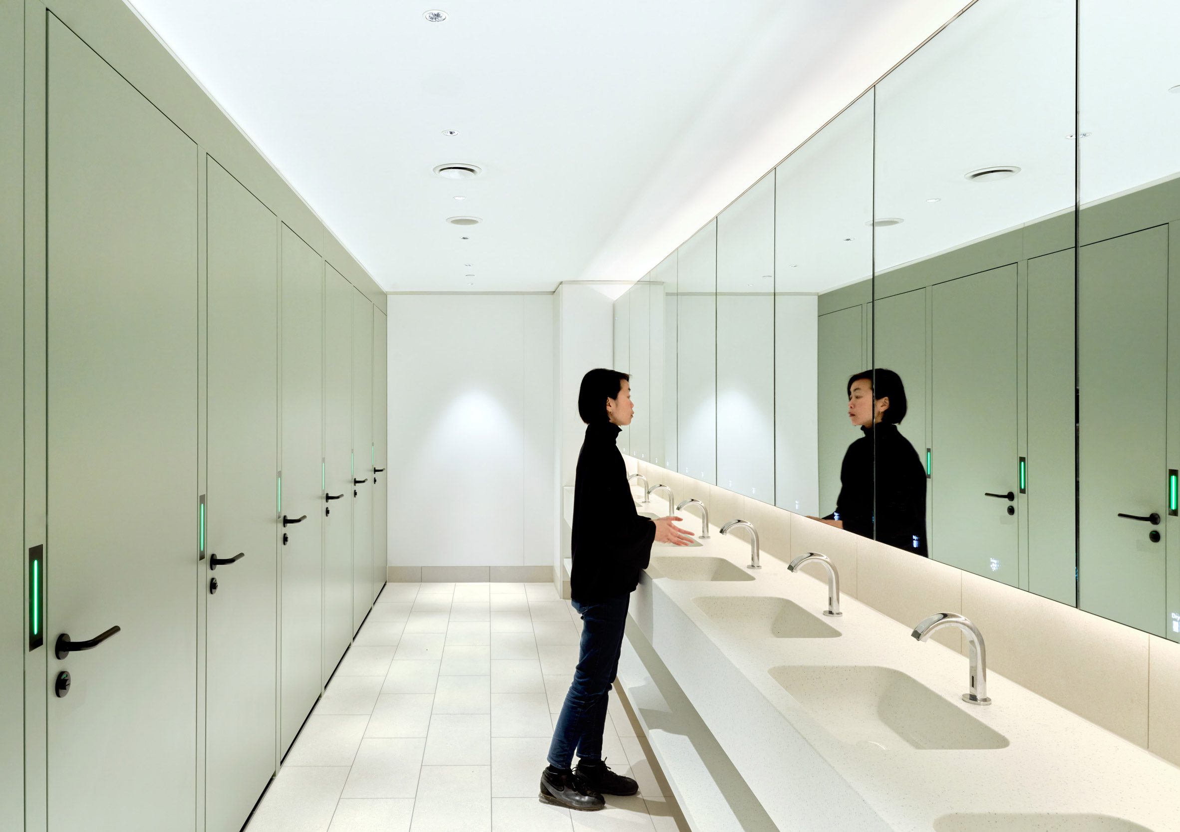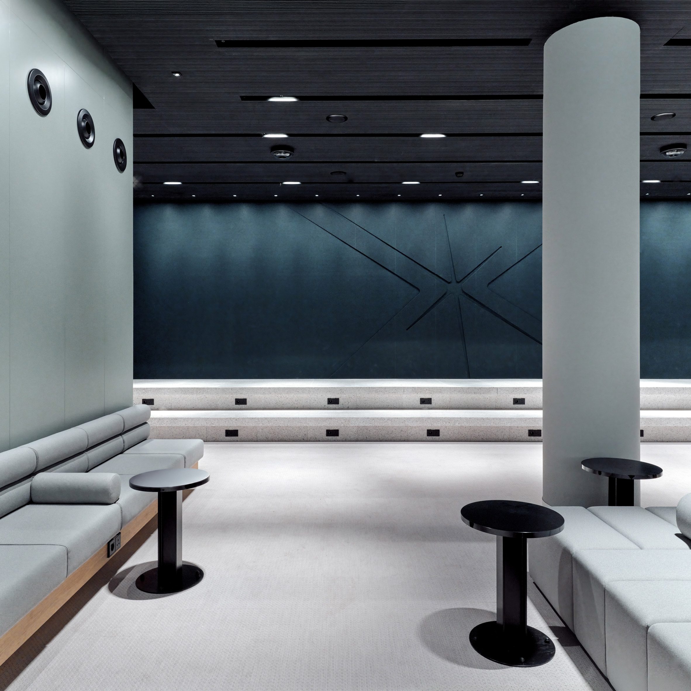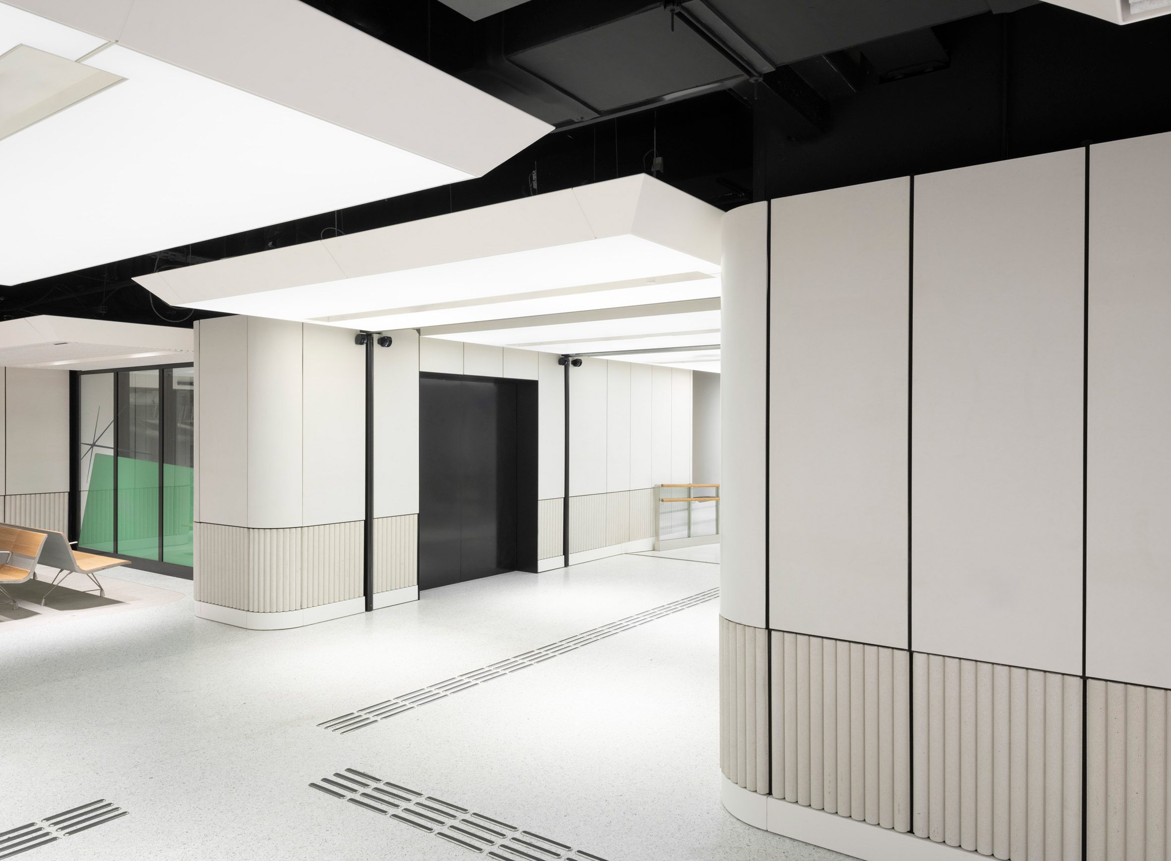 團隊在設計新候車室時刻意以再利用為先,選擇改造而非全盤重建,保留車站許多既有結構與技術設備(如原有的灑水滅火系統),避免拆除重造造成的資源浪費,並減少額外碳排放負荷。此外,候車室內部大量採用永續建材,從生物基隔熱材料、回收毛氈到再生鋁合金等,就連地坪水磨石都具有負碳特性,確保建築全生命週期的環境足跡降至最低。 所謂負碳特性,是指材料在生產全過程中吸收的二氧化碳總量大於排放總量,因而對環境產生淨正效益。這些環保材料既符合當代強調永續的理念,又兼具耐久性,為空間長期使用提供可靠保障。