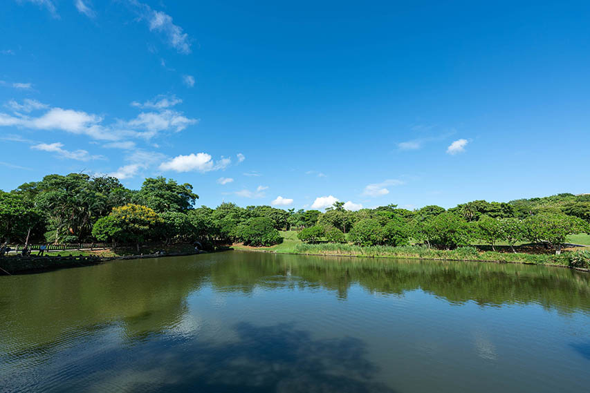 高綠覆率城市園林,遠眺四獸山,近賞後山埤